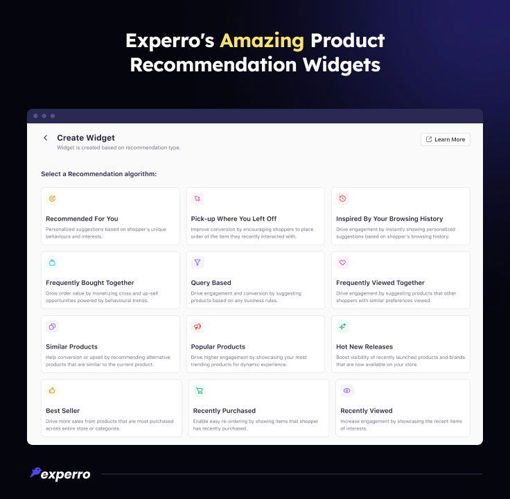 Experro excels in all these areas by providing highly accurate and personalized suggestions through its advanced AI-powered recommendation engine. This guarantees a better user experience and increased sales.