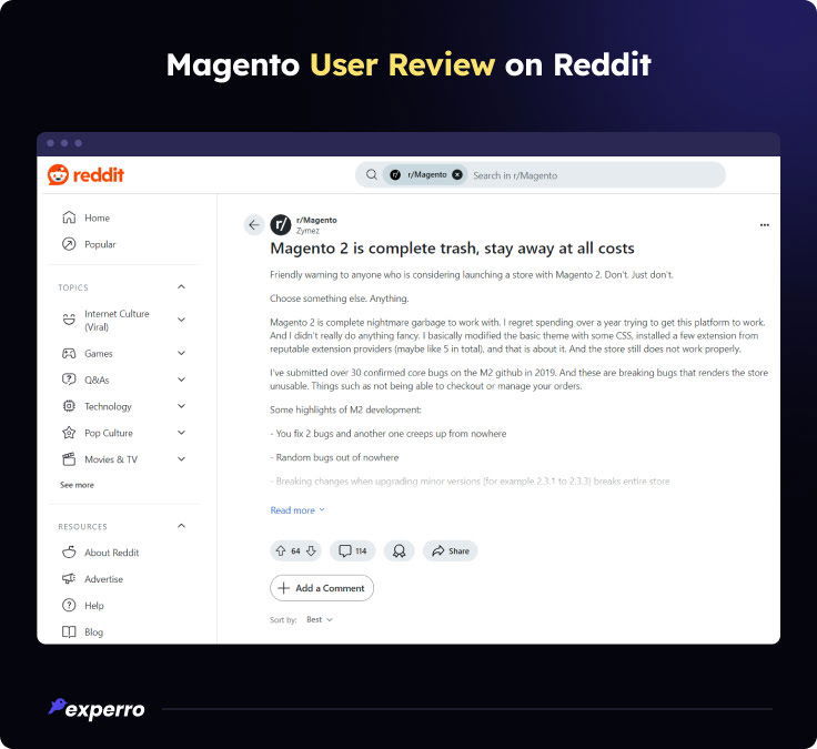- Magento is not a perfectly robust eCommerce platform as its users express a lot of pain points.