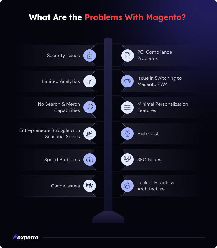 Managing these issues can be time-consuming and expensive. Frequent Magento bugs, limited analytics, and difficulties with customization add to the complexity.