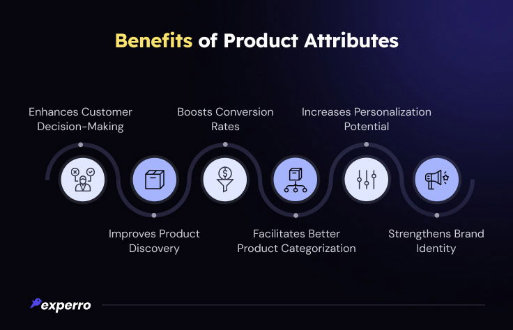- Product attributes enhance product visibility, improving discovery and customer decision-making.