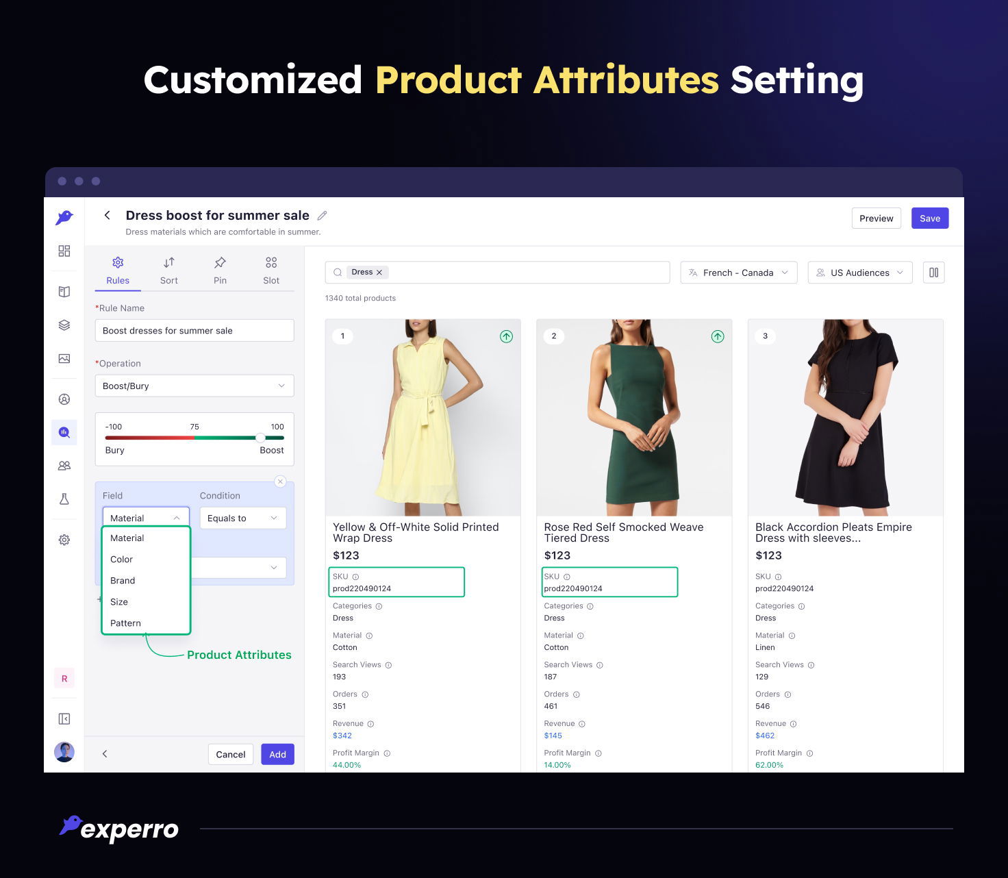 eCommerce platforms like Experro simplify the process by automating product attribution and ensuring that your product characteristics remain accurate and up-to-date.