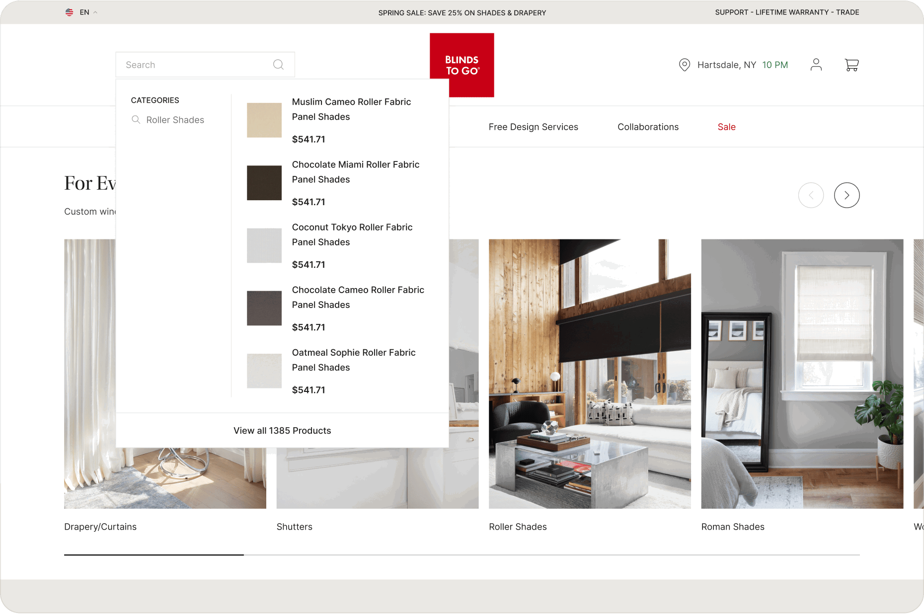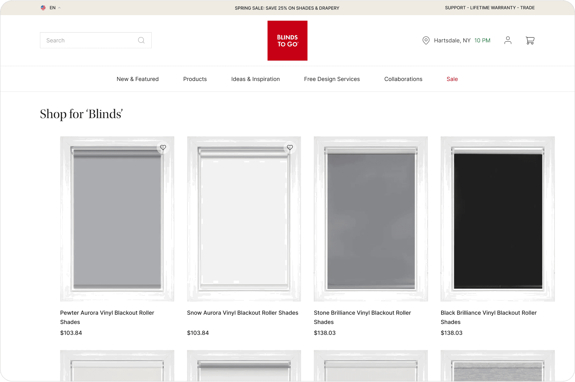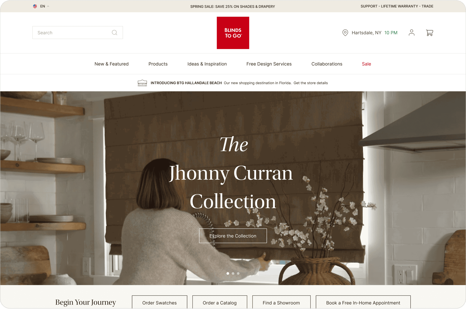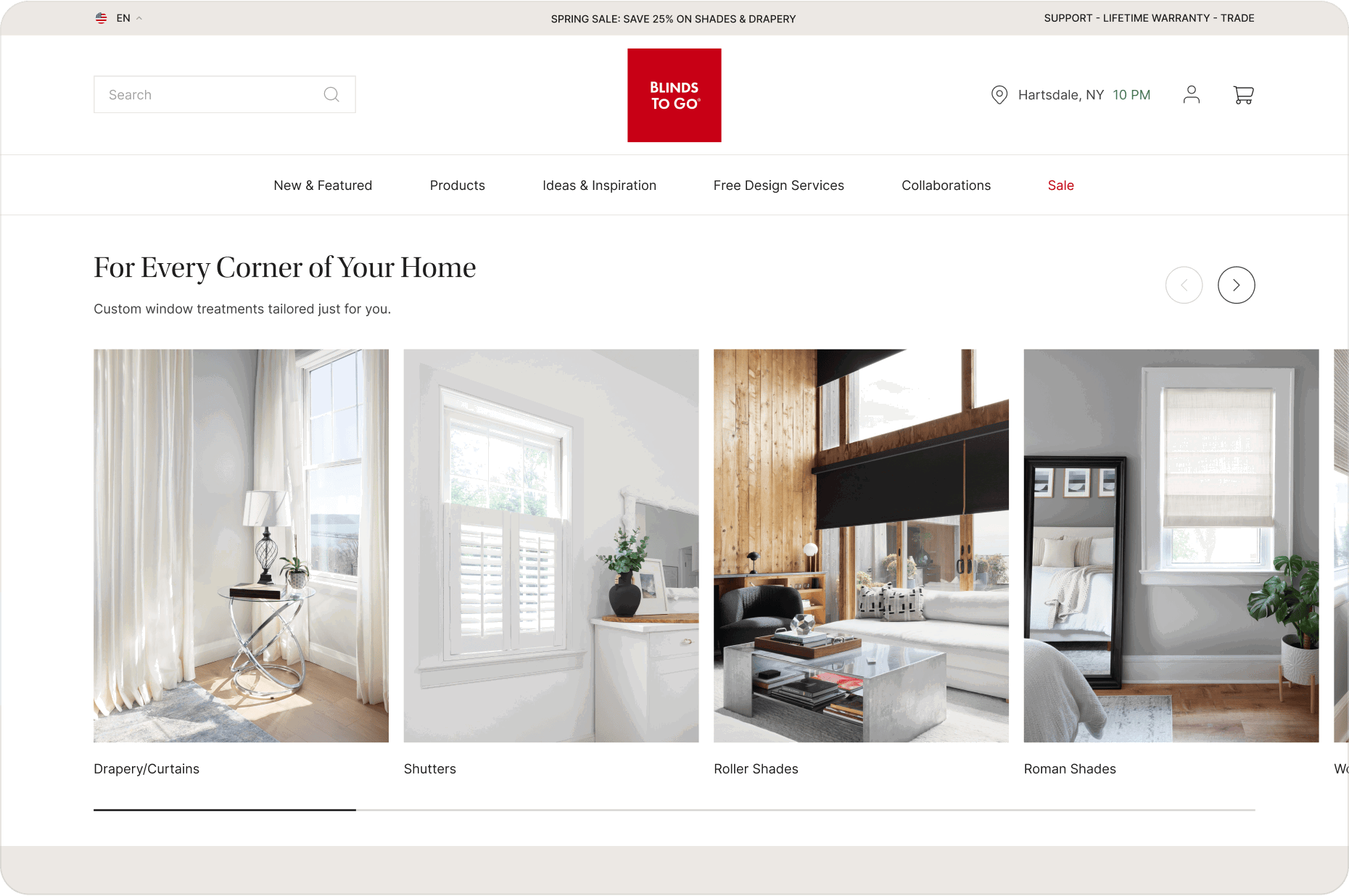 Blinds To Go (BTG), headquartered in Paramus, New Jersey, is a leading manufacturer and retailer of custom blinds and shades, with over 90 showrooms across the USA and Canada. Known for its exceptional customer service and the "Red Carpet" experience, BTG has made a strong impact in the industry. Their eCommerce storefront offers a wide range of blinds, shades, and drapes in various colors and sizes, serving as the primary digital channel for customers.