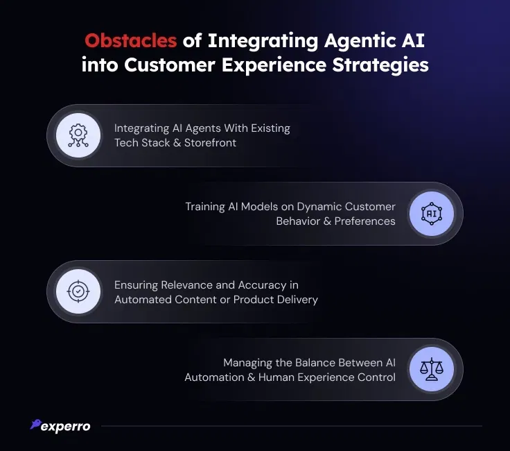 While the benefits are compelling, deploying agentic AI platforms for CX comes with hurdles. Understanding these challenges is key to building a sustainable strategy for agentic AI in customer service and commerce.