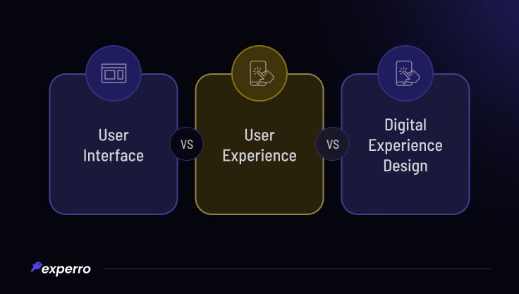 There is a difference between digital experience vs user experience. Digital experience design is a more comprehensive term in comparison to UI design and UX design.