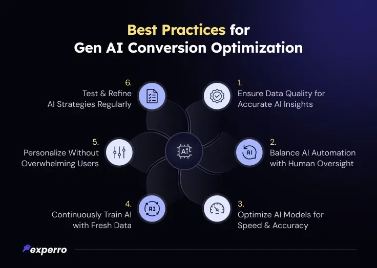 For effective gen AI conversion optimization, businesses must follow best practices to maintain AI accuracy and ensure ethical implementation.