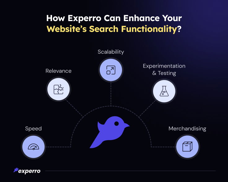 - Experro enhances search functionality for websites by providing speed, AI-powered search, relevance, scalability, and effective merchandising.