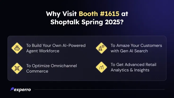 See Experro’s Gen AI-powered platform in action! Visit booth #1615 at Shoptalk Las Vegas 2025 for a live demo and discover how AI Agents can take your retail strategy to the next level.